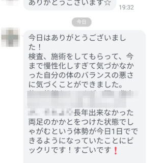 「気がついたら●●も良くなっていました!」というように様々な他の部位まで改善していかれる方が多くいらっしゃいます。